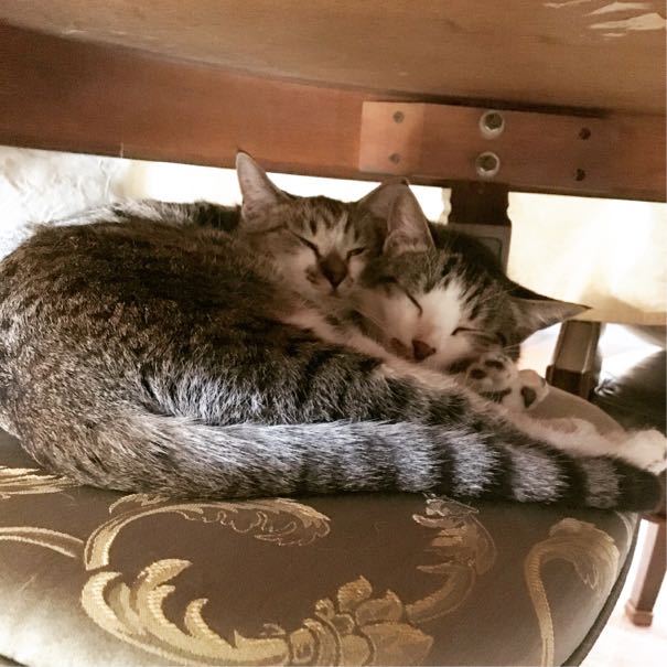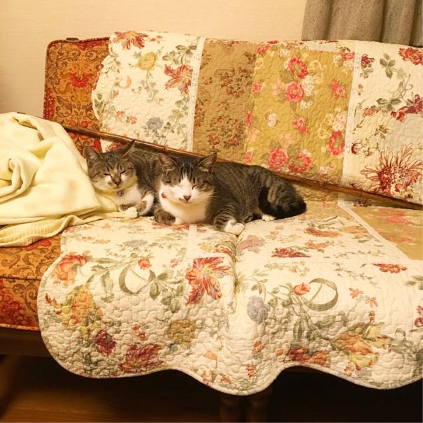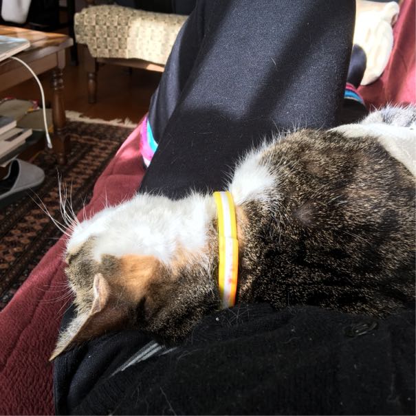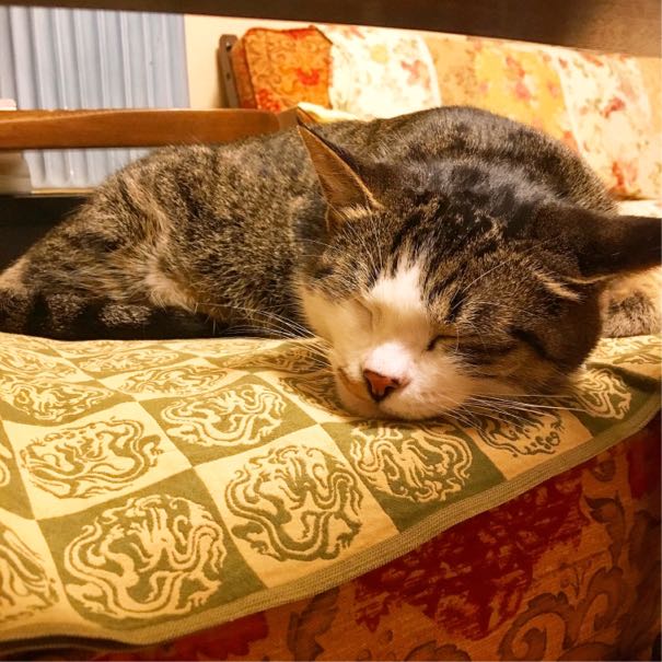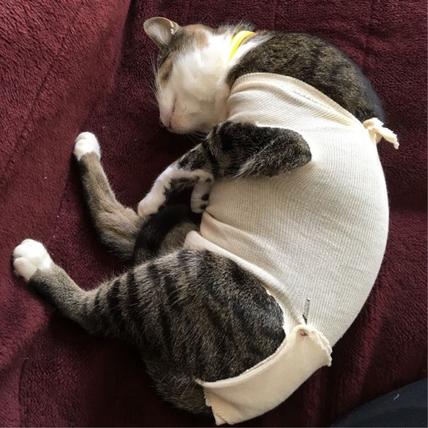 諦めてボンバーの腹の上でぐったり寝ました。